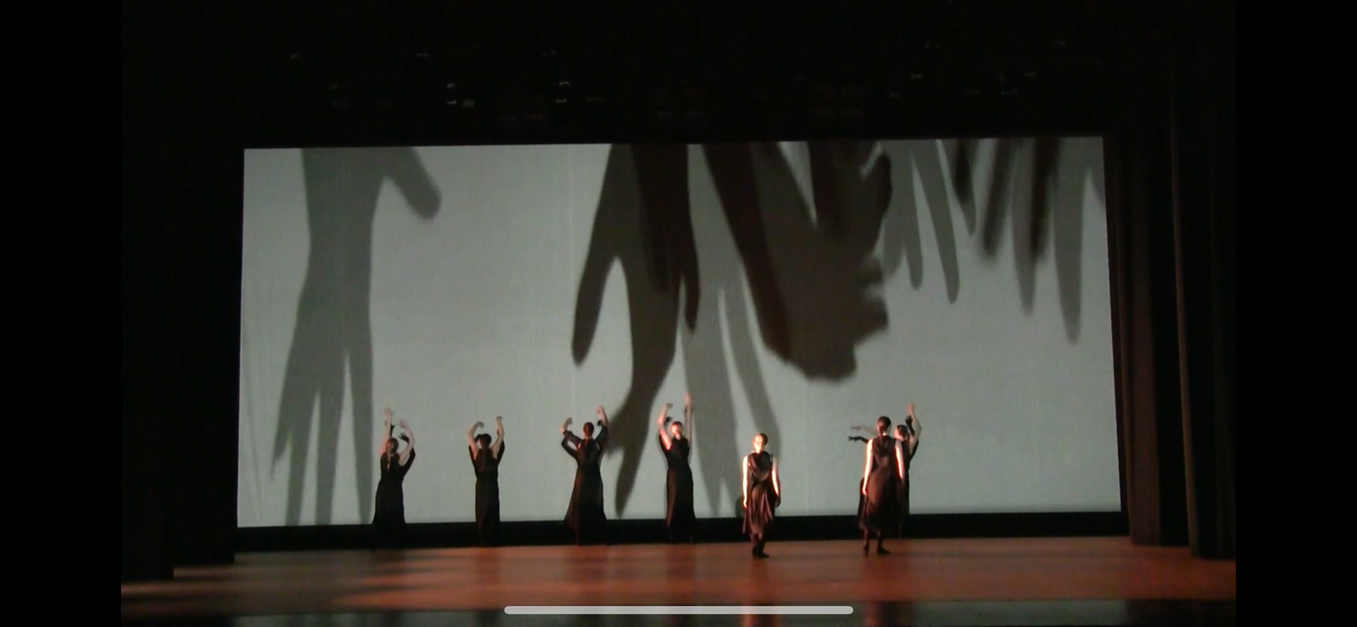 By incorporating elements like the looming shadowed hands, I emphasized the choreographer’s exploration of "Who is in control?" and the duality of community versus individuality. The interplay of light and shadow reflects the theme of eclipse and transformation, aligning with the choreographer's idea of purging and renewal through collective action.
